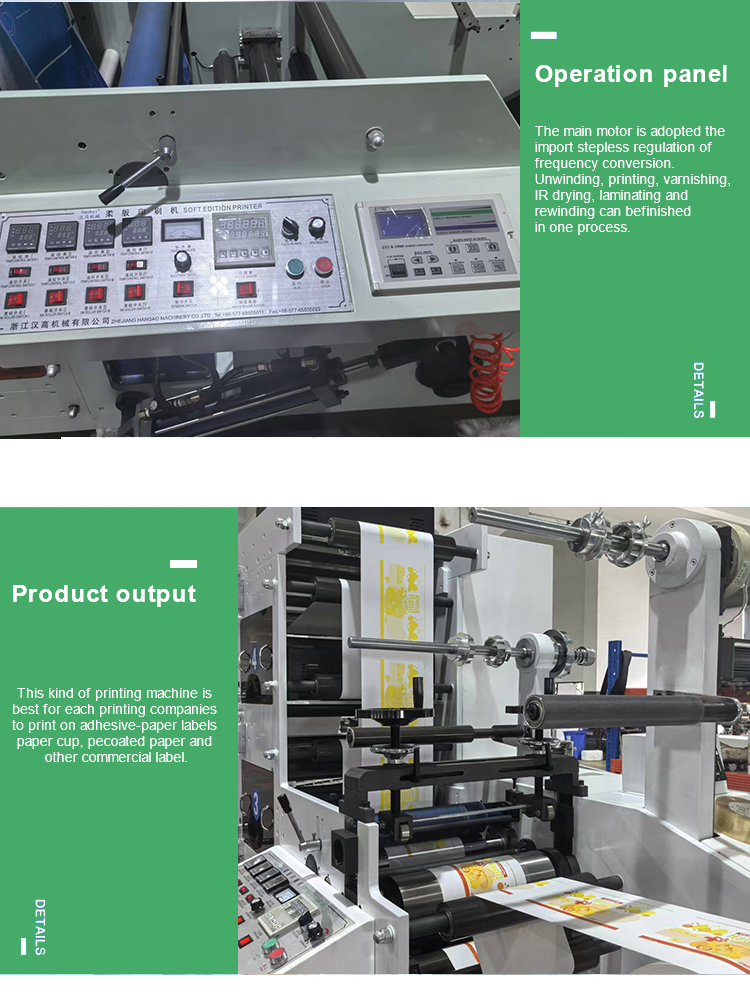 Все процессы — размотка, печать, лакирование, ИК-сушка и намотка — выполняются за один рабочий цикл. Этот тип печатной машины является оптимальным решением для типографий, занимающихся печатью на бумажных трубочках, бумажных стаканах, самоклеящихся этикетках и других коммерческих упаковочных материалах.