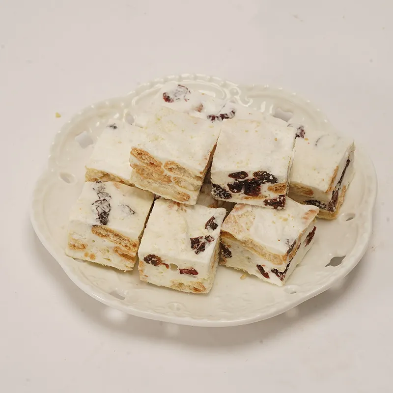 Майцзялэ Печенье с нугой — это идеальное сочетание сладости и насыщенного вкуса! Для их производства используются тщательно отобранные высококачественные зефир, хрустящее печенье и ароматное сухое молоко, а также кисло-сладкая клюква и другие сухофрукты. Каждый кусочек снежинки, искусно изготовленный по уникальной технологии, обладает насыщенным молочным вкусом. Зефир придает гладкую текстуру, печенье — хрустящую, а сухофрукты — освежающий кисло-сладкий привкус. С каждым кусочком на языке сталкиваешься с разнообразием вкусов, создавая богатое и гармоничное сочетание.