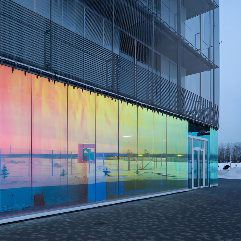 Переливающееся стекло — это декоративное стекло с динамическим изменением цвета, достигаемым за счет специального оптического покрытия. Его ключевая особенность заключается в способности отражать разнообразные цветовые оттенки в зависимости от угла обзора и освещения, создавая эффект волшебной игры света и тени.