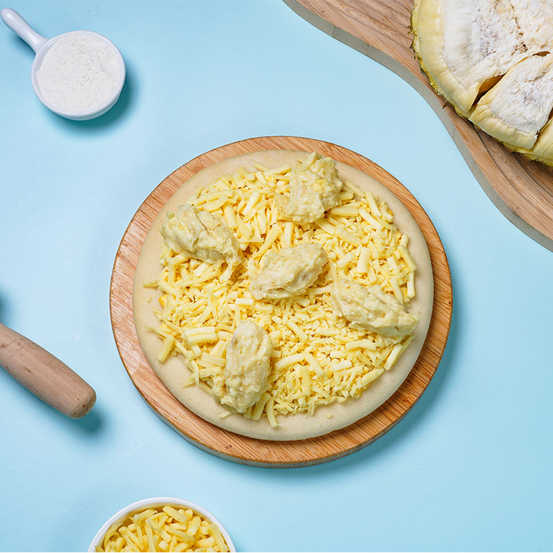 Состав: Пшеничная мука, дуриан, тертый сыр моцарелла (сырный продукт), питьевая вода, майонез, растительное масло, кулинарный жир, сухое цельное молоко, дрожжи, сахар, соль, витамин С, стевиолгликозиды