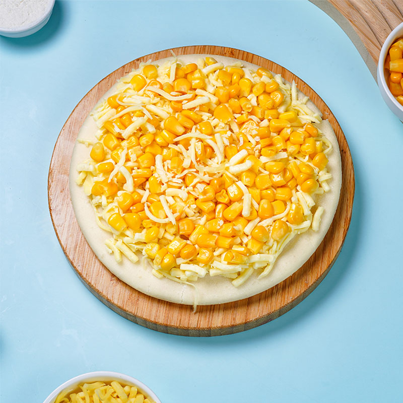 Состав: пшеничная мука, кукурузные зерна, тертый сыр моцарелла (сырный продукт), питьевая вода, майонез, растительное масло, кулинарный жир, сухое цельное молоко, дрожжи, сахар, соль, витамин С, стевиозид