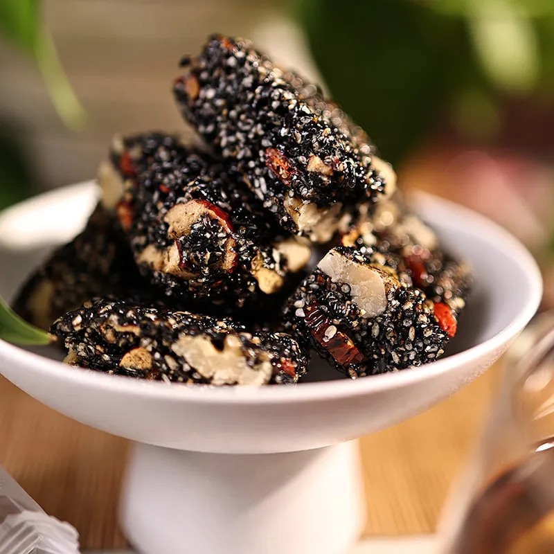 Пирожное «Хуньянь Сы Ву Гао» разрушает стереотип «полезная еда невкусна, а вкусная еда не полезна»: оно одновременно питательное для тела и души и невероятно вкусное. Для его приготовления тщательно отбираются высококачественные ингредиенты: красные даты, ягодки годжи, грецкие орехи и чёрный кунжут. Каждое из них богато питательными веществами: красные даты укрепляют кровь и энергию, годжи питают печень и почки, грецкие орехи улучшают работу мозга и почек, а чёрный кунжут способствует здоровью кишечника и волос. В сочетании с солодовым сиропом и коричневым сахаром они создают гармоничный вкус без каких-либо лишних добавок — полностью натурально и безопасно для употребления.