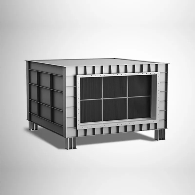Теплопередающий элемент пластинчатого воздухоподогревателя изготовлен из холоднокатаной стальной пластины, а основными материалами являются углеродистая сталь, легированная сталь, нержавеющая сталь, двухшпиндельная нержавеющая сталь и т.д. Он обладает такими преимуществами, как большая площадь теплопередачи на единицу объема, малый вес, небольшой перепад давления и отсутствие образования золы.Теплопередающий элемент имеет полностью сварную форму и хорошую герметичность. По сравнению с традиционным трубчатым воздухоподогревателем, он обладает очевидными преимуществами и является основным видом воздухоподогревателя в последние годы. Разработанный нашей компанией воздухоподогреватель из эмалированной стальной пластины обладает отличной коррозионной стойкостью и может использоваться для рекуперации отработанного тепла из низкотемпературных дымовых газов в нагревательных печах.