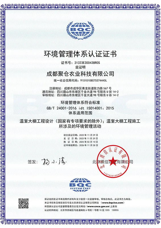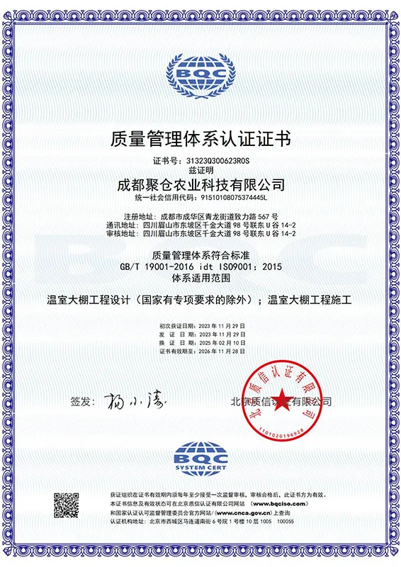 ООО Чэнду Цзюйцан Агротехнологическая Компания — это современное индустриальное высокотехнологичное предприятие, профессионально занимающееся научно-исследовательским проектированием, производством, монтажом, продажей, обслуживанием тепличных проектов, а также комплексными сельскохозяйственными научно-техническими услугами. «Цзюйцан Нонгъе» благодаря профессиональным техническим разработкам, высокой эффективности производственных мощностей, качественным монтажным возможностям, а также зрелому опыту управления проектами и качественному расширенному обслуживанию быстро выросла в основную силу тепличной отрасли юго-западного региона.