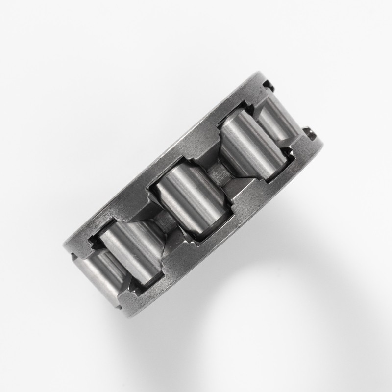 Узел радиального игольчатого ролика и сепаратора представляет собой независимый элемент качения. Две направляющие поверхности сепаратора широко разнесены, что позволяет точно направлять игольчатый ролик и удерживать его в правильном положении. Этот тип подшипника подходит для случаев, когда вал и отверстие седла могут использоваться в качестве дорожек качения. Требуется только обработать дорожки качения вала и отверстия седла подшипника с заданной точностью размеров и геометрической точностью, чтобы обеспечить высокую точность вращения в наименьшем пространстве.