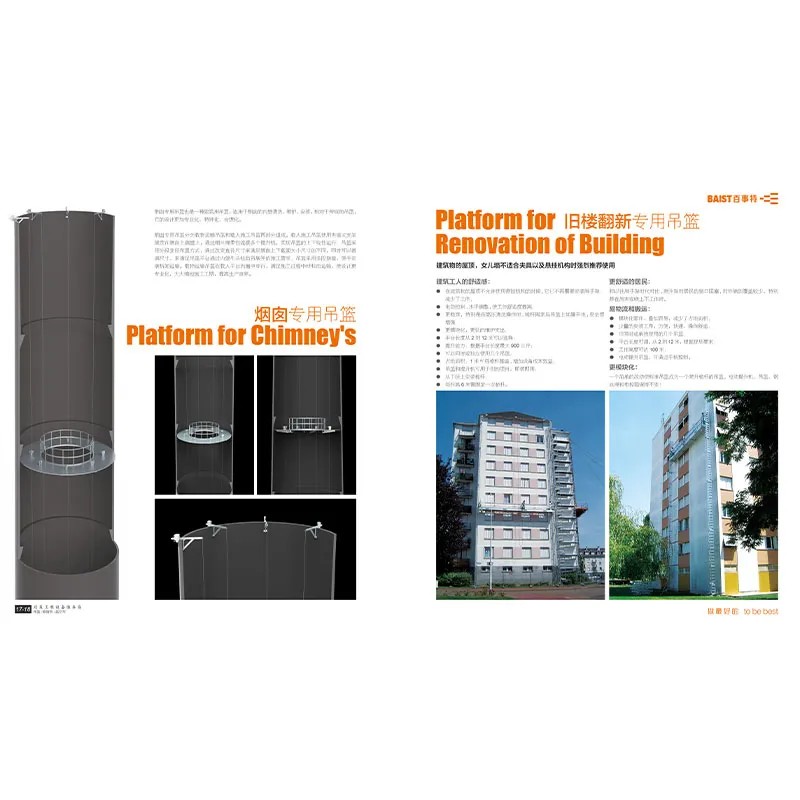 Крепление и движение: Фиксируется к верхней стенке дымовой трубы с помощью кронштейнов зажимного типа, соединяется с несколькими подъемными механизмами через стальные тросы, обеспечивая линейное и плавное вертикальное перемещение люльки.