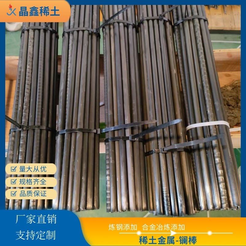 Редкоземельные металлические стержни: применяются для мембранного литья подвесным методом для добавления редкоземельных металлов, в железо и сталь и сплавы, чтобы играть роль в рафинировании зерна, десульфуризации и раскислении.