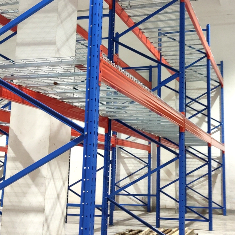 Балки: обычно изготавливаются из двойной С-образной стали, сваренной встык, для формирования закрытой коробчатой балочной конструкции с крюками или стопорными штифтами, соединенными со стойками на обоих концах. После сборки со стойками он может нести товары на поддонах и имеет хорошее сопротивление изгибу.