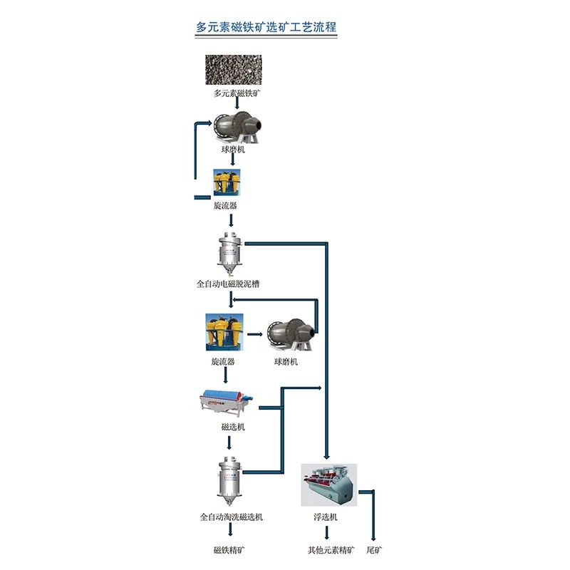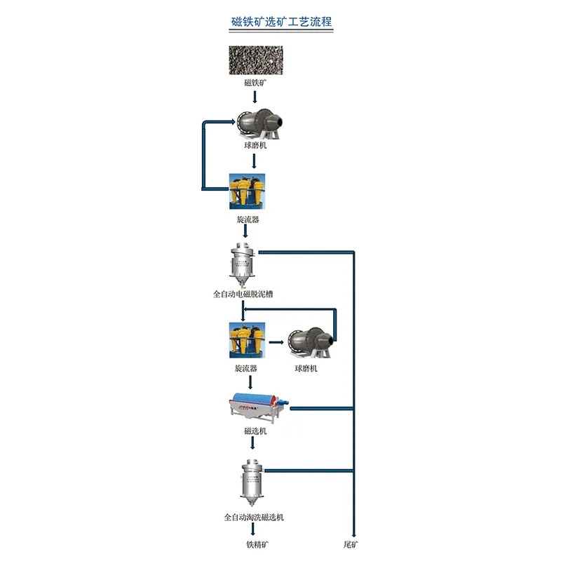 По сравнению с промывочным магнитным сепаратором, высота сепарационной емкости промывочного илоотделителя снижена примерно на 30%, что делает его более подходящим для обработки пульпы с крупной гранулометрией, высоким содержанием шламов и низким содержанием железа. Он часто используется на начальной стадии грубого обогащения в качестве оборудования для обесшламливания, обезвоживания и сгущения. Замена барабанных магнитных сепараторов, магнитных илоотделителей и обезвоживающих желобов на промывочный илоотделитель может оптимизировать процесс обогащения. Установка промывочного илоотделителя перед гидроциклонами и высокочастотными грохотами повышает эффективность классификации; установка перед мельницей может значительно увеличить производительность мельницы и содержание железа в питании; установка перед промывочным магнитным сепаратором может дополнительно повысить конечное содержание железа в концентрате.