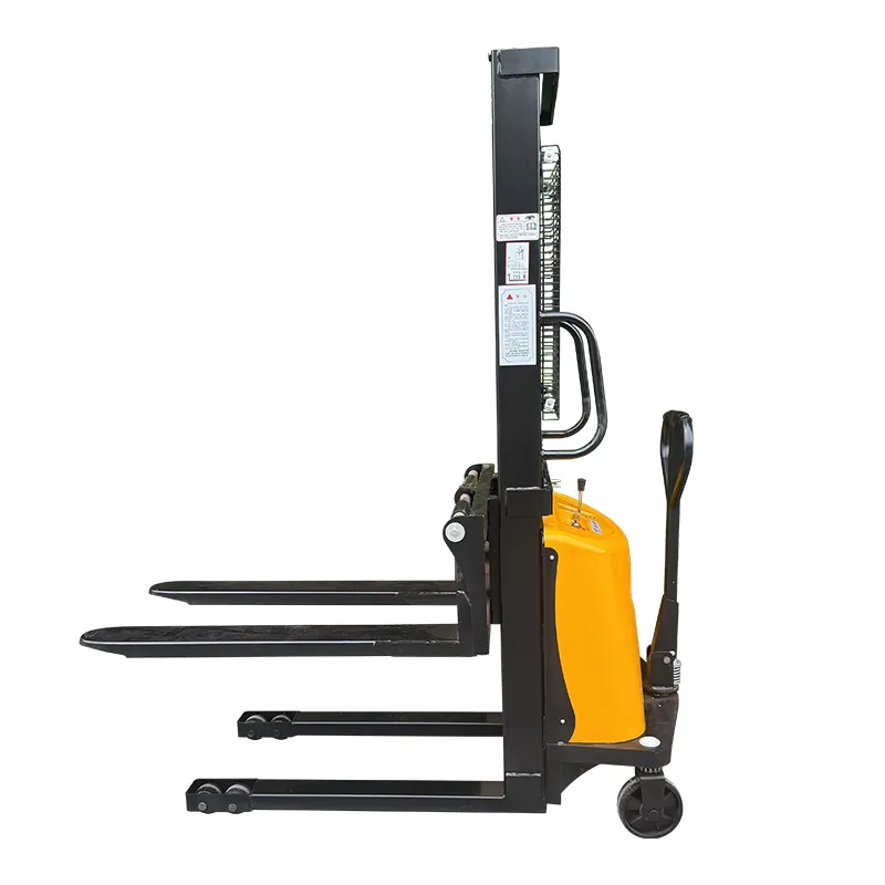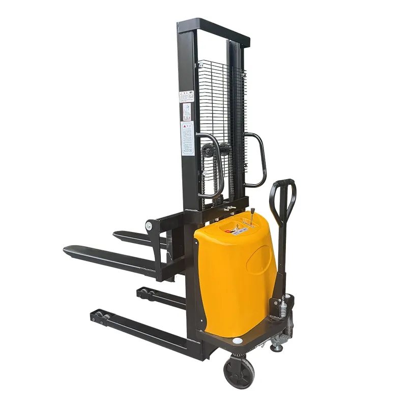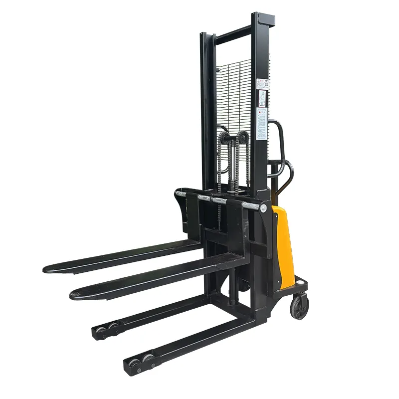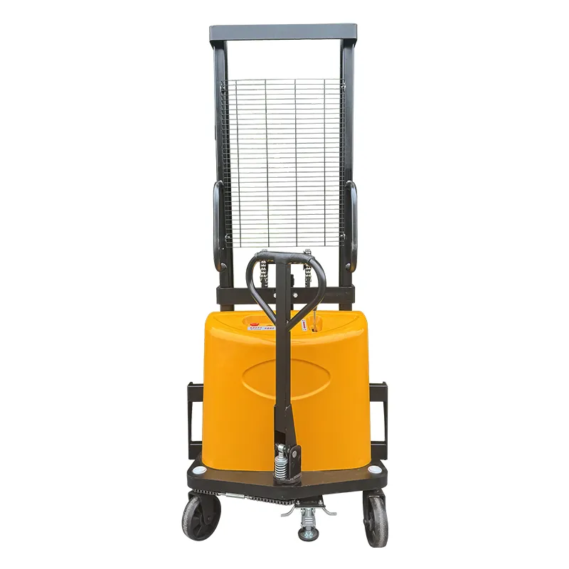Гидравлический цилиндр через направляющие колеса с обеих сторон рычага приводит в действие усиленную цепь большой тяговой способности, поднимая вилы, утолщенная и удлиненная цепная база обеспечивает устойчивость груза.