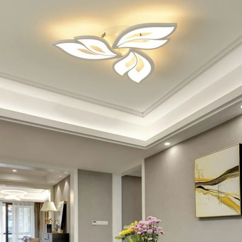 Трехрожковая современная подвесная лампа в форме листьев со светодиодами для потолка, подходит для гостиной и спальни