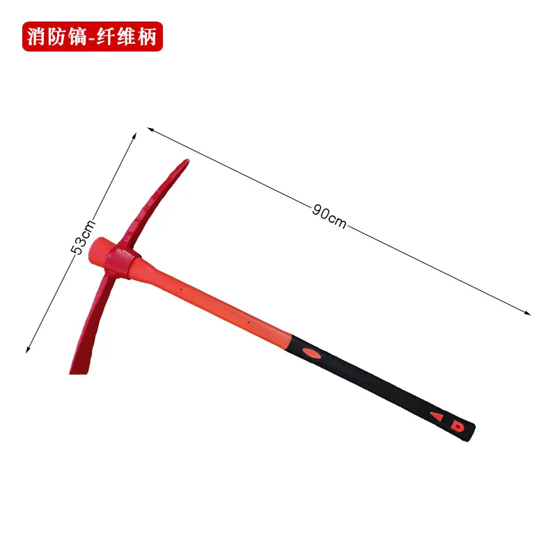 Противопожарная кирка - важный инструмент для пожаротушения и аварийного демонтажа зданий. Она состоит из двух частей: головки кирки и рукояти кирки.Кирка целиком изготовлена из высокоуглеродистой стали, которая после закалки приобретает чрезвычайно высокую твердость. Один конец представляет собой острое лезвие (используется для долбления и разрушения почвы), а другой конец - плоское лезвие (используется для рытья). Кромка острая и износостойкая.- прочная, и ее нелегко обжать или сломать; рукоятка кирки в основном изготовлена из высокопрочного массива дерева или стекловолокна. Рукоятка из массива дерева защищена от коррозии и влаги, рукоятка из стекловолокна легкая и ударопрочная, поверхность корпуса рукояти рукоятка оснащена нескользящими стропами, обеспечивающими надежный захват, соединение между рукояткой и киркой дважды усилено заклепками или болтами, что обеспечивает высокую несущую способность, а общий вес регулируется на уровне 2-3 кг с учетом эффективности приложения усилия и портативности.