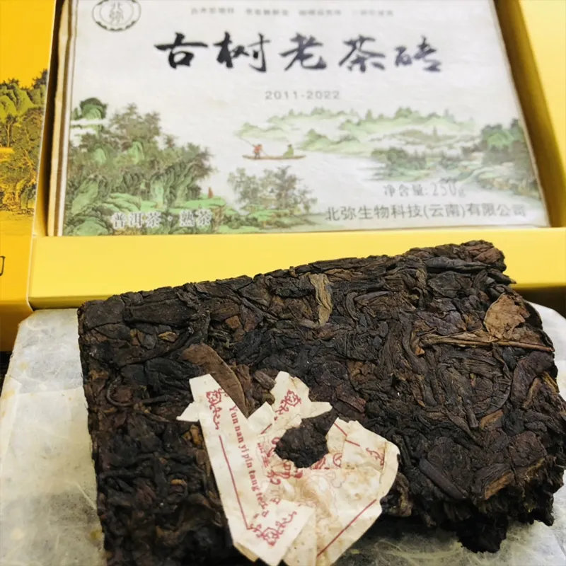 « Древние деревья и старые чайные кирпичи» выберите древние деревья юньнань, чтобы загорать зеленый чай в качестве сырья, после умеренной кучи брожения, сортировки сита и высокотемпературного парового давления. Продукт был произведен в 2011 году, так как старая упаковка была напечатана с надписью эффективность, поэтому была изменена новая упаковка. Но самый внутренний слой бумаги остается старой упаковкой. Поскольку после многих лет старения, внутренняя бумага полна превратностей жизни, суп ярко красный, вкус мягкий, чэнь сян богатый, скользкий и сладкий. Сексуально мягко, не холодно, не жарко, независимо от юга и севера, весна, лето, осень и зима должны пить. Особенно на севере осенью и зимой лучше пить пожилым людям. В коробке есть нож для чая из сандалового дерева, чтобы облегчить доступ к чаю.