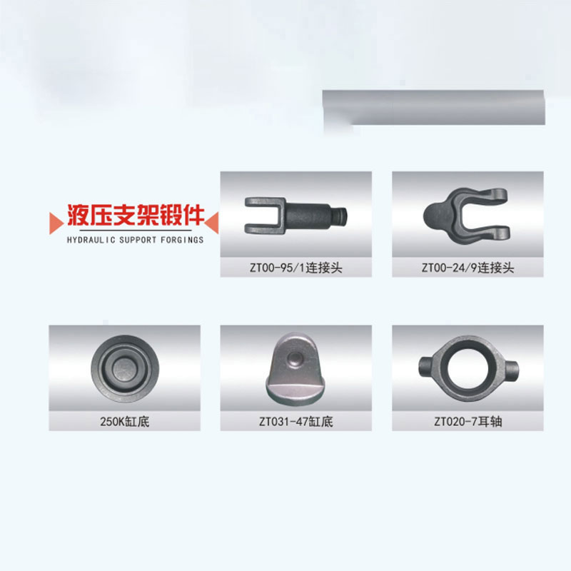Кованые детали гидравлических крепей для горных работ являются ключевыми несущими элементами гидрокрепей, где технология ковки повышает прочность и эксплуатационные характеристики материала. Основные кованые компоненты гидравлических крепей включают: соединительные головки, цапфы, фрикционные башмаки, днища гидроцилиндров и другие элементы.