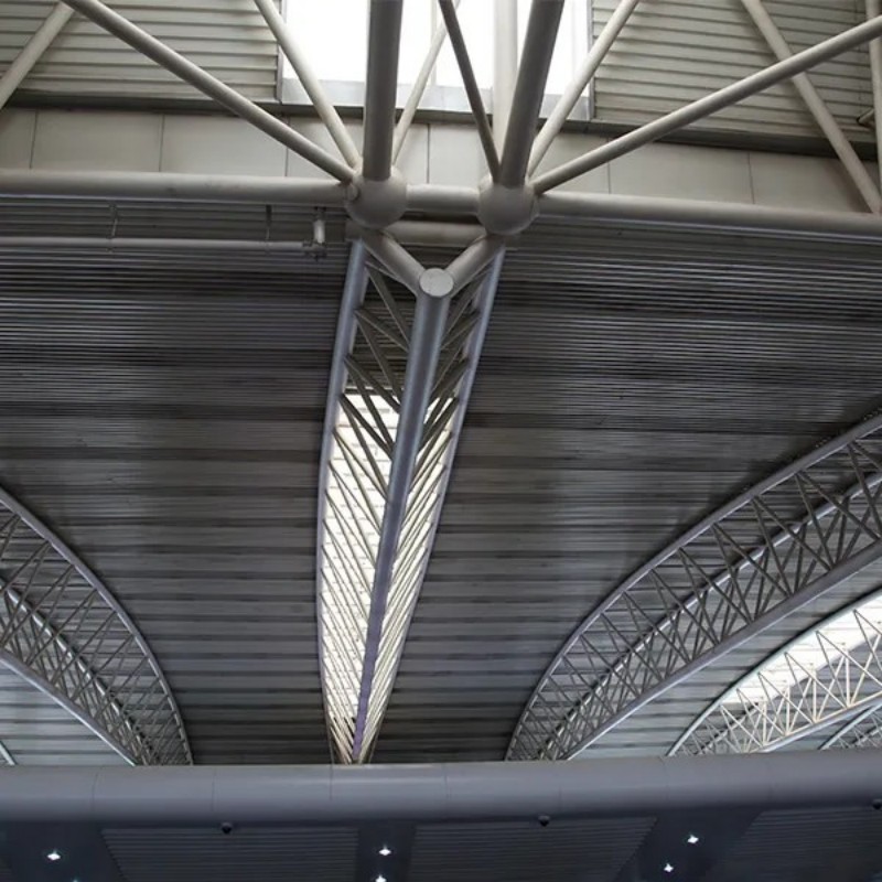 Ферменная конструкция – это конструктивная система, в которой фермы являются основным несущим элементом. Она состоит из верхних и нижних поясов, а также элементов сетки, соединенных узлами, образуя решетчатую конструкцию. Элементы обычно изготавливаются из высокопрочных материалов, таких как сталь и алюминиевые сплавы, а узловые соединения включают сварку и болтовые соединения. Благодаря научным механическим расчетам и проектированию формируется эффективная несущая система. Её структурные формы разнообразны, включая треугольные фермы, трапециевидные фермы и фермы с параллельными поясами, что обеспечивает гибкий выбор в соответствии с требованиями конкретного проекта.