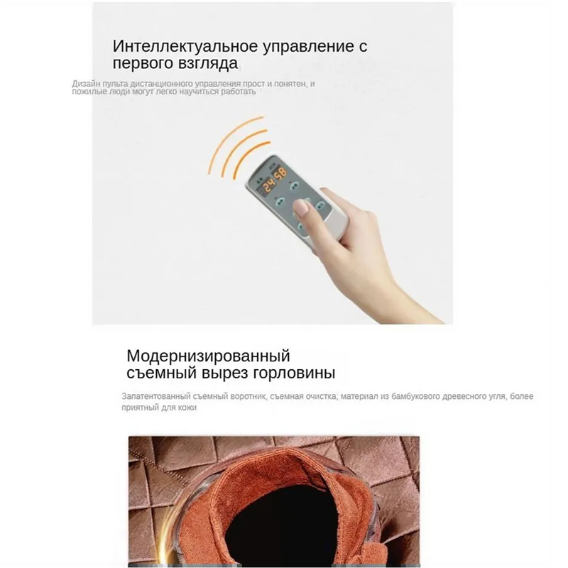 Подробная информация о товаре: Размеры 70 x 80 x 56 см, Мощность: 1500 Вт, Напряжение питания: 220 В, Вес брутто: 9 кг, Размеры упаковки: 108 x 13 x 70 см, Пульт дистанционного управления, коврик для ног, коврик и вилка.