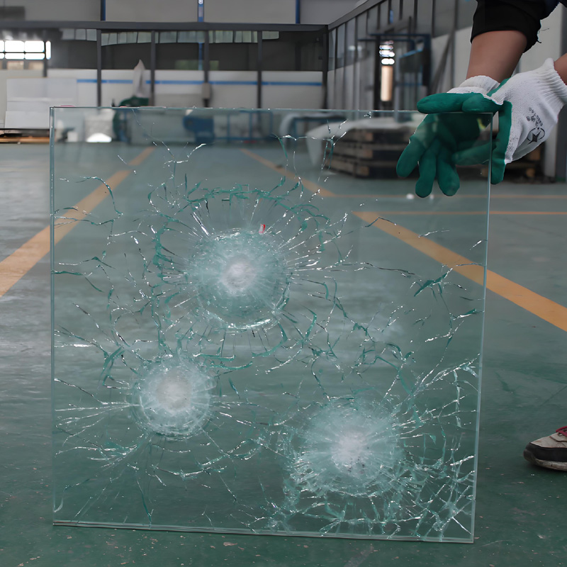Ламинированное стекло обладает высокой безопасностью: при разрушении осколки остаются приклеенными к промежуточной пленке, предотвращая разлет и травмы. Даже при сильном ударе стекло сохраняет целостность, образуя только радиальные трещины. Промежуточный слой выдерживает многократные удары молотком, ножом и даже может кратковременно остановить пулю, значительно превосходя по защитным свойствам обычное стекло.