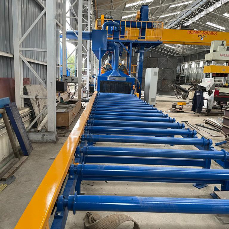 Эта серия линий предварительной дробеструйной обработки стальных листов и профилей состоит в основном из четырех частей: предварительного нагрева, дробеструйной обработки, покраски и сушки. В соответствии с производственными потребностями пользователей, она может быть дробеструйной одной машиной, или она может быть подключена для реализации непрерывной работы предварительного нагрева, очистки горячей дробью, покраски и сушки. Она подходит для поверхностного удаления ржавчины и окраски (т.е. предварительной обработки) стальных секций, а также для дробеструйной обработки и удаления ржавчины длинных структурных частей.