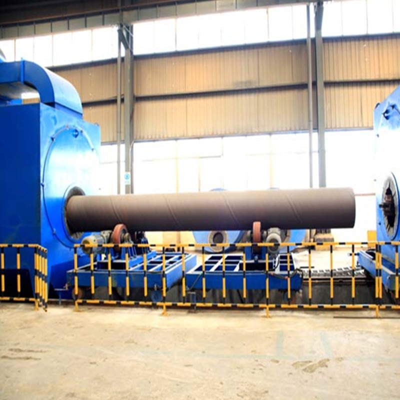 Данное оборудование обрабатывает поверхность трубы с помощью высокоскоростного движения потока дроби, удаляет оксидную кожу и другие загрязнения на внутренней стенке, эффективно улучшает прочность стальной трубы, коррозионную стойкость поверхности и адгезию пленки за счет микропластической деформации поверхности, устраняет сварочные напряжения, тем самым значительно улучшая качество и срок службы трубопровода в целом.