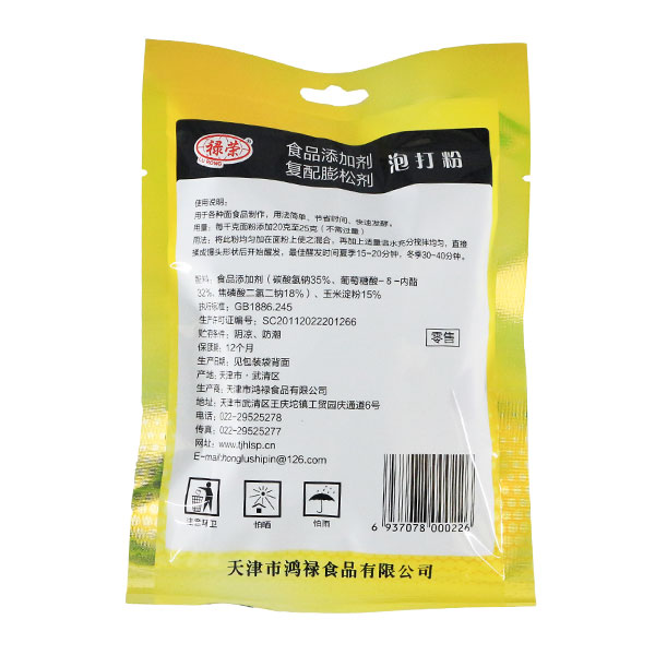 1. [Состав] Пищевые добавки (бикарбонат натрия, глюконо-дельта-лактон, дигидропирофосфат динатрия), кукурузный крахмал.