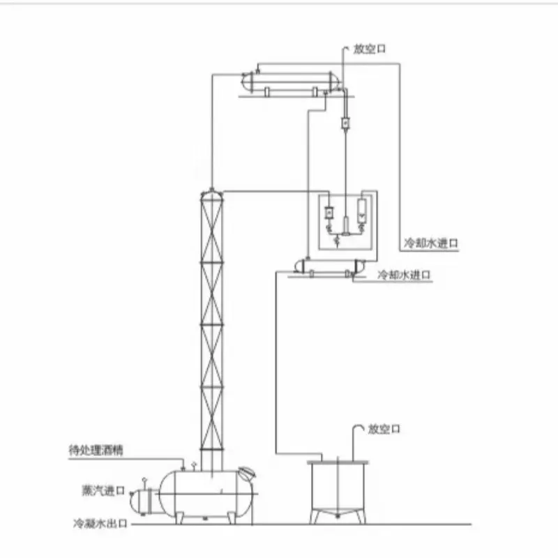 Данная установка предназначена для рекуперации разбавленного спирта в фармацевтической, пищевой, легкой и химической промышленности, способствуя снижению производственных затрат и повышению экономической эффективности. Данная установка позволяет перегонять разбавленный спирт крепостью от 30° до 50° до крепости 90°-95°. В случае высоких требований к качеству готового спирта можно увеличить флегмовое число, однако это соответственно снизит выход готового продукта. Содержание спирта в сбрасываемом остатке составляет ≤ 3°. Это отличное оборудование, специально предназначенное для рекуперации спирта.