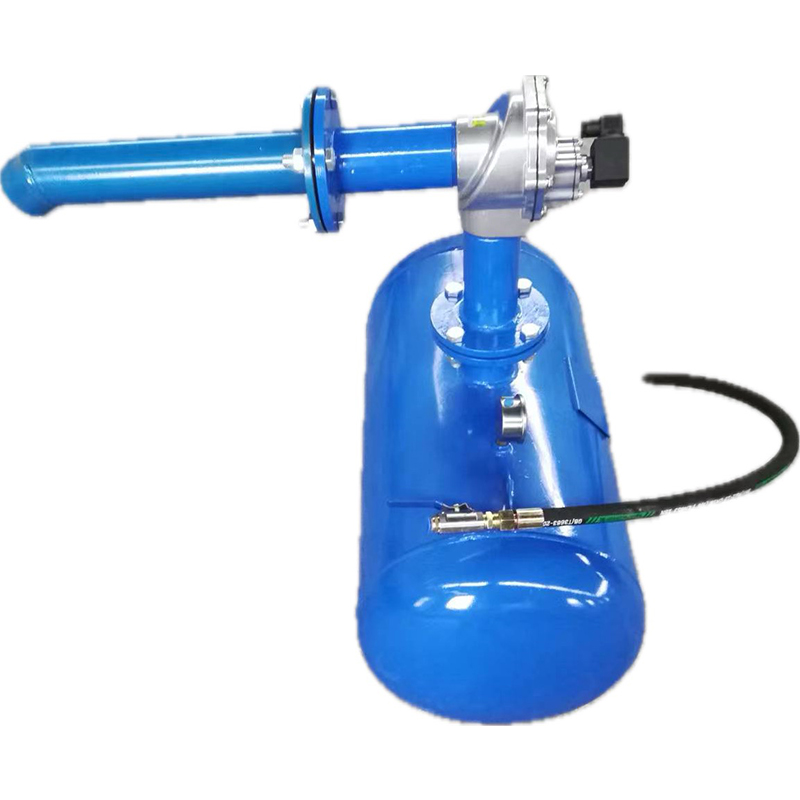 Воздушная пушка (Air cannon, псевдоним: воздушный ускоритель, сломанная арка, блокировщик) - это в соответствии с аэродинамическими принципами, сжатый воздух внутри пушки с мгновенным высвобождением сильного воздушного потока сжатого газа ударной силы, со скоростью более одного маха (скорость звука) непосредственно ударяет по замкнутой зоне отказа хранения сыпучего материала, эта внезапная ударная волна расширения, которая преодолевает статическое трение материала, так что материал в контейнере снова возвращается к потоку, эффективно предотвращает и устраняет вязкость материала, обеспечивает нормальный поток материала, достигая эффекта разрушения арочного потока. Воздушная пушка имеет основные преимущества простой конструкции, удобного использования, большой ударной силы, безопасности, энергосбережения, автоматического управления, простой эксплуатации, без повреждения бункера, является идеальным устройством для разрушения арки, которое является чистым и экологически чистым, с низким потреблением энергии.