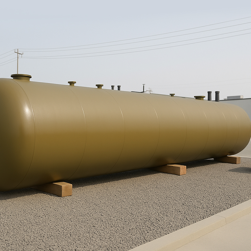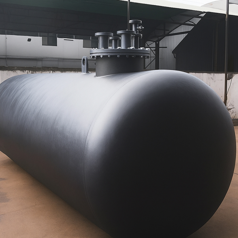 Горизонтальные резервуары: Состоят из торцевых крышек и горизонтальных круглых или овальных стенок. Обычно используются в производственных процессах или на автозаправочных станциях. Объем таких резервуаров обычно меньше 100 м³.