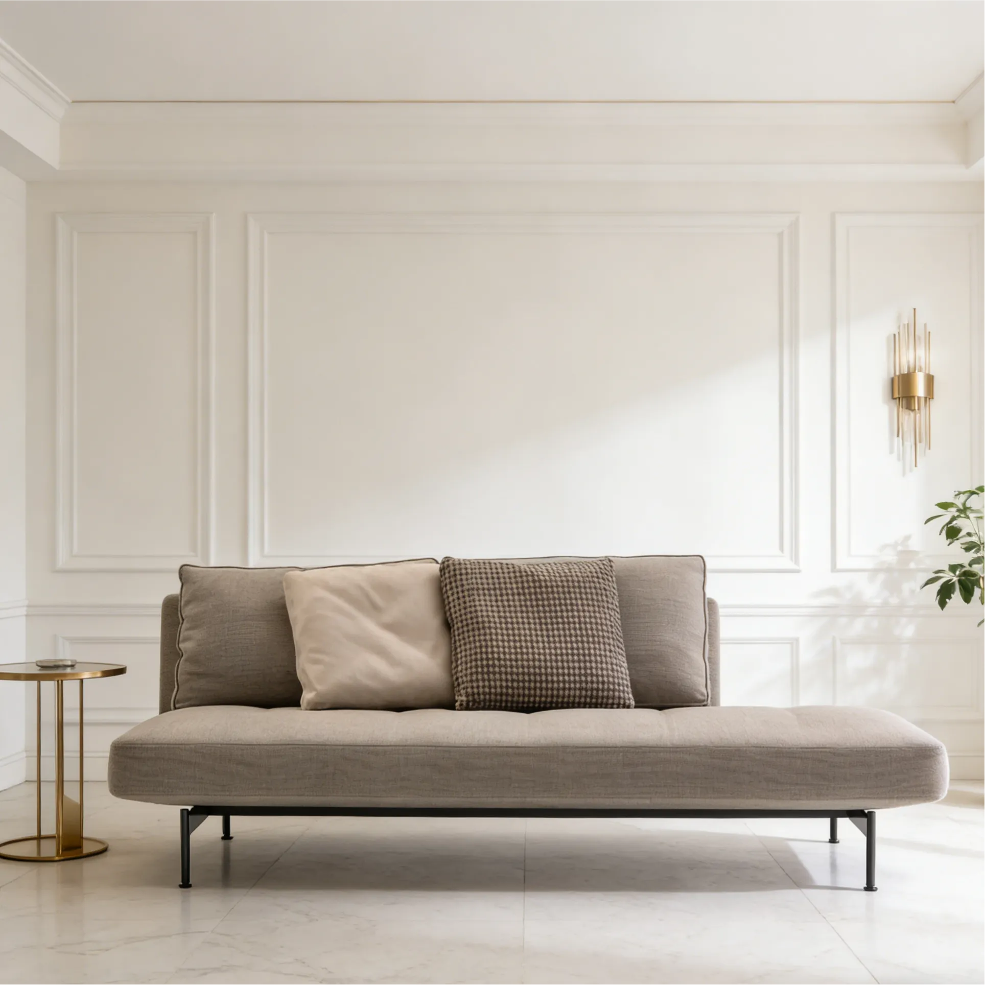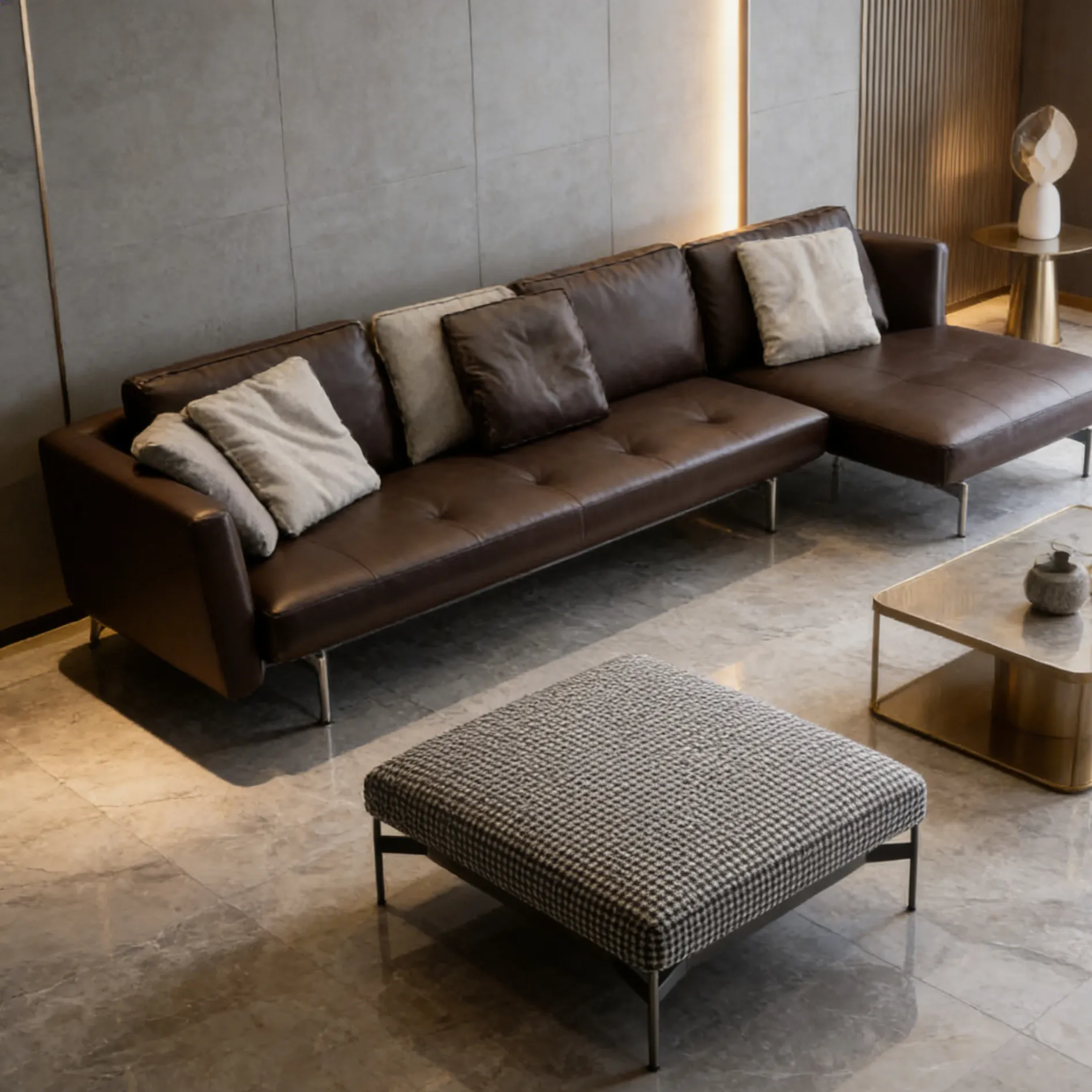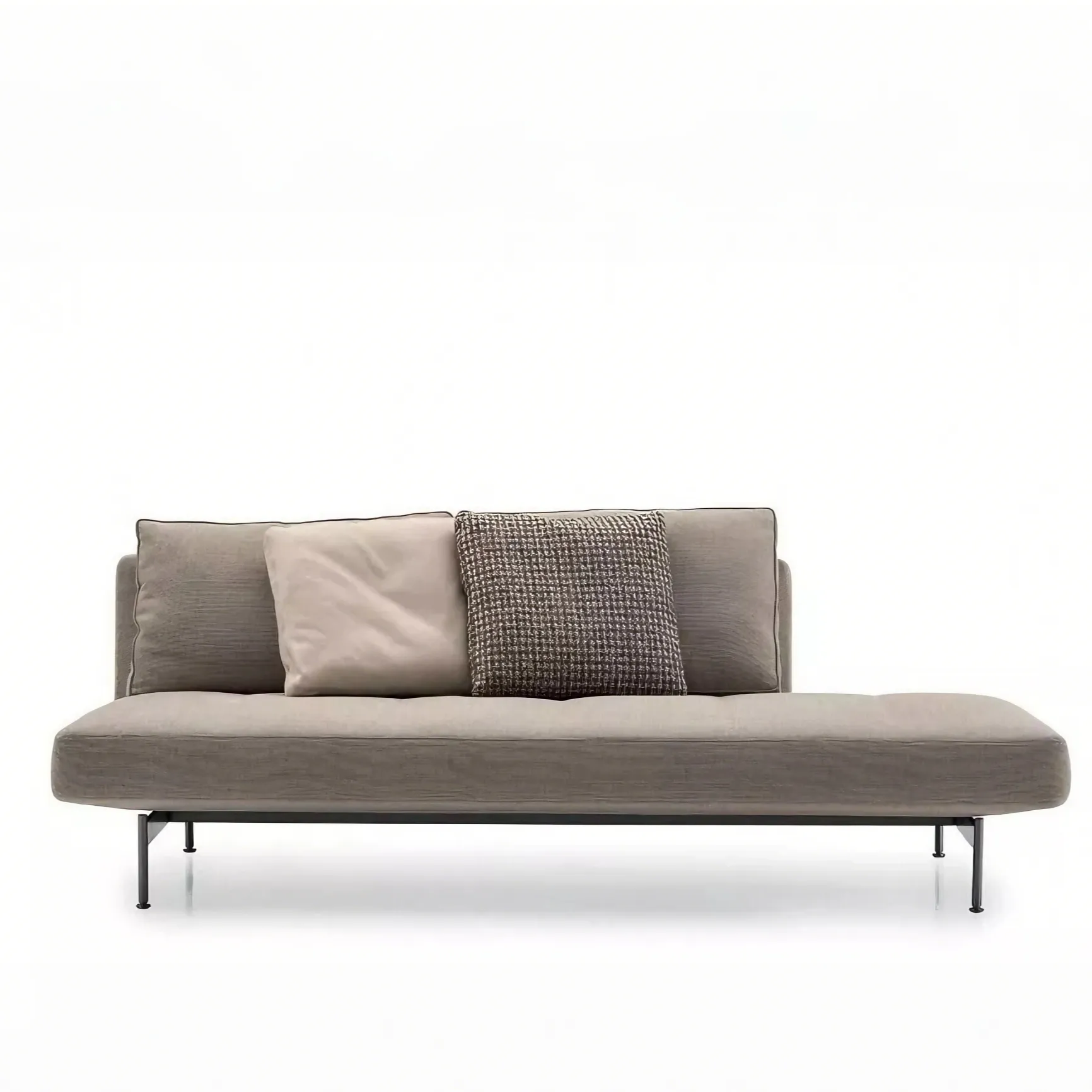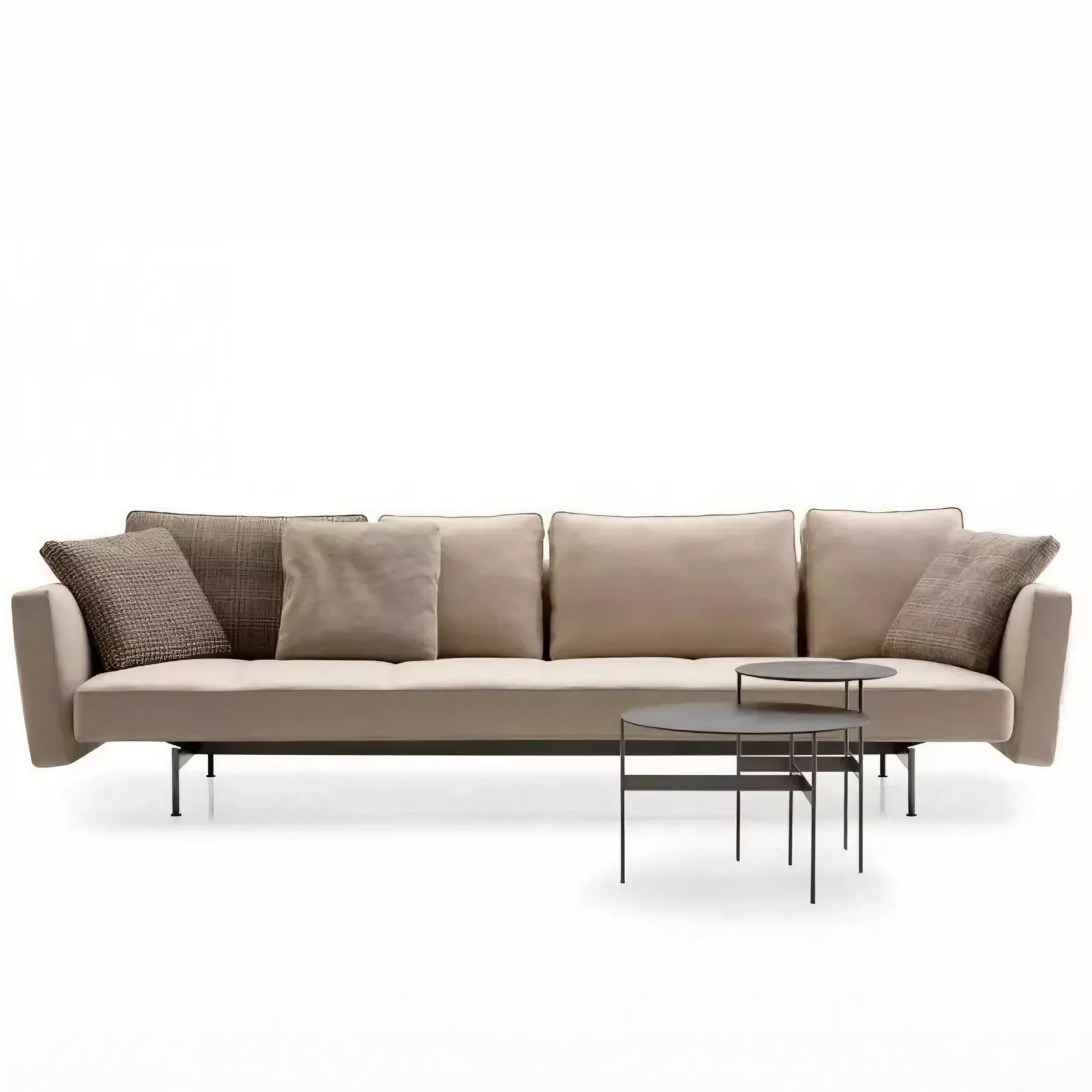 Дизайн начинается с современной системы сидений, отличающейся тщательно продуманным формальным балансом. Сиденья трех размеров (175, 210 и 270 см) с обволакивающими или линейными спинками и подлокотниками различных размеров гармонично сочетаются, создавая диван, адаптированный к пространству и вкусу заказчика. Систему дополняет элемент шезлонга (105 x 135 см), который может использоваться как завершающий элемент линейной композиции, а благодаря более объемной спинке и подлокотникам может использоваться самостоятельно или в паре с другим шезлонгом, образуя диван с глубокой посадкой. Детали подушек и опорного основания придают дизайну лёгкость. Подушка сиденья имеет изысканную модульную строчку с шагом 35 или 45 см; спинные подушки двух размеров обрамлены профилированными кантами. Опорное основание системы состоит из перекрёстных брусьев со скруглёнными стальными ножками, соединёнными перекладиной. Вся конструкция покрыта оловянной лаковой краской. Система также включает диван-кровать (150 x 210 см) — единственный в коллекции B&B Italia, использующий сиденья и спинки других диванов. Съёмные правый или левый подлокотник могут служить изголовьем, когда благодаря сдвигу сиденья и откидыванию спинки диван превращается в односпальную кровать.