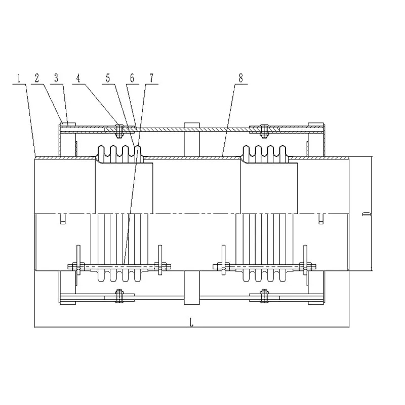 Сдвоенный шарнирный компенсатор состоит из двух угловых компенсаторов, соединенных длинным промежуточным патрубком. Он способен поглощать поперечные перемещения от прогиба в одной плоскости. Оси их шарниров могут воспринимать осевое усилие от внутреннего давления. В основном применяется для компенсации перемещений трубопровода, вызванных изменениями температуры, механическими вибрациями и другими факторами, а также для обеспечения эффективного соединения между участками трубопровода.
