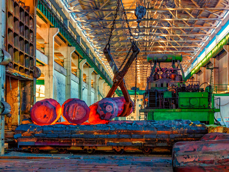 Наш завод обладает современным тяжелым оборудованием: максимальное усилие гидравлического пресса достигает 8000 тонн, манипулятор способен работать с поковками весом до 100 тонн, максимальные внутренние размеры газовой камерной печи составляют 22×2,5×2,2 метра. Благодаря этому оборудованию мы можем изготавливать поковки весом до 100 тонн, длиной до 20 метров и диаметром до 2 метров.