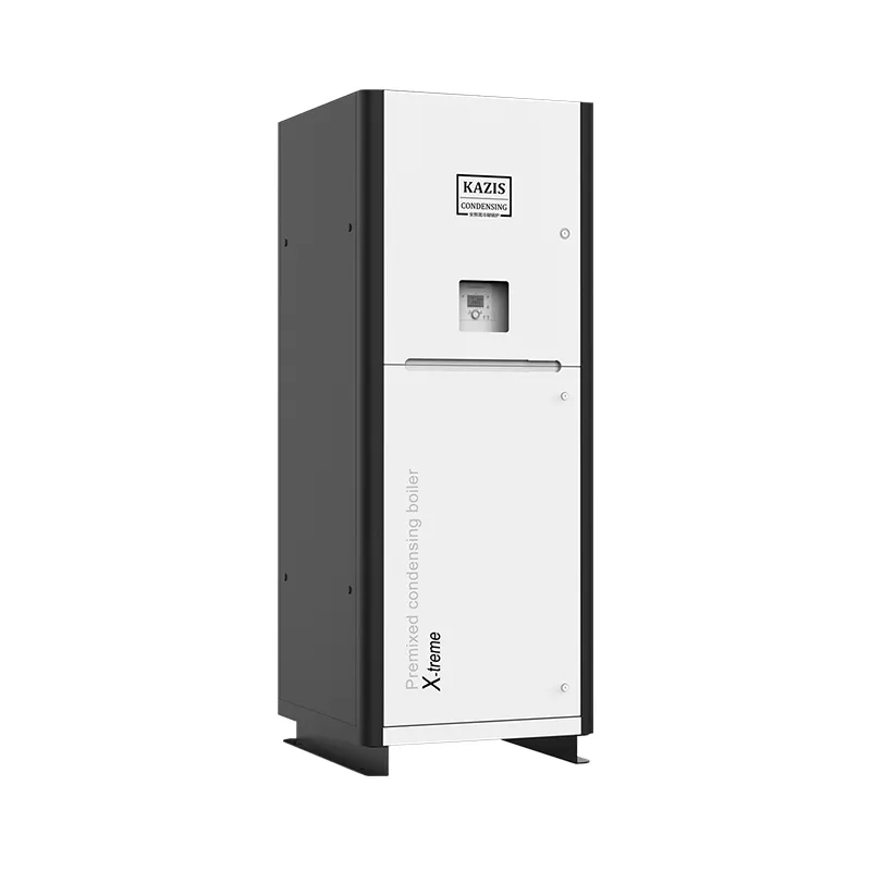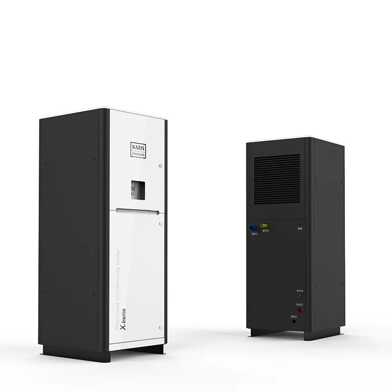Малый блочно-модульный теплоисточник KAZIS состоит из полностью предварительного смешения высокоэффективного конденсационного газового водонагревательного котла, циркуляционного насоса котла, теплообменника, расширительного бака, вторичного циркуляционного насоса, шкафа управления, трубопроводов, дымохода (опционально), арматуры, приборов, корпуса и других компонентов.