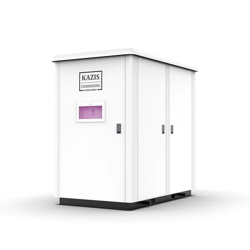 Малый блочно-модульный теплоисточник KAZIS состоит из полностью предварительного смешения высокоэффективного конденсационного газового водонагревательного котла, циркуляционного насоса котла, теплообменника, расширительного бака, вторичного циркуляционного насоса, шкафа управления, трубопроводов, дымохода (опционально), арматуры, приборов, корпуса и других компонентов.