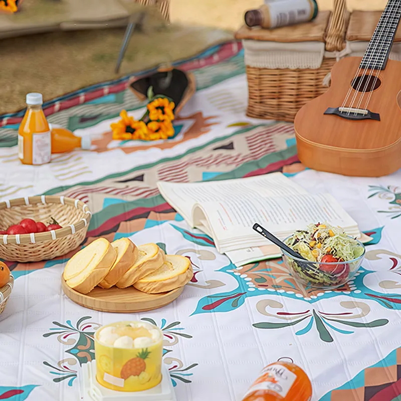 1 шт, увеличенный квадратный пикниковый коврик размером 200×200 см, вмещает 6-8 человек сидя или 3-4 человека лежа. Усилен липучками, имеет ручку для переноски. Подходит для различных сценариев: кемпинг, пикник, пляж и др. Цельная упаковка для хранения, двойное оксфордское дно, влаго- и теплоизоляция. Ультразвуковое закрепление ваты, можно многократно стирать в стиральной машине, готов к использованию после раскрытия, упаковка в усиленный полиэтиленовый пакет, рулонный дизайн, портативный и легко складывается, безопасно без формальдегида, тепло- и влагоизоляция, не прилипает песок и трава, мягкий, можно стирать в стиральной машине, серия "этнический стиль". Водоотталкивающая ткань из весенней тафты, влаго- и грязеотталкивающая, износостойкая, проста в уходе — масляные пятна и загрязнения легко удаляются протиранием. Поддерживаются различные способы транспортировки.