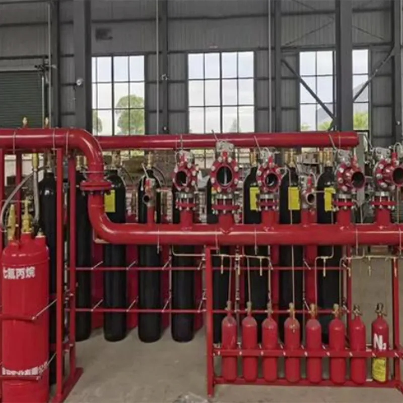 Внешняя система пожаротушения с хранением под давлением на основе гептафторпропана использует инновационную конструкцию с двумя баллонами, в которых отдельно хранятся огнетушащее вещество гептафторпропан и азот под высоким давлением, что позволяет создать более научно обоснованный механизм пропульсии. Во время работы азот под высоким давлением быстро впрыскивается в резервуар с огнетушащим веществом, обеспечивая постоянную движущую силу для проталкивания жидкого гептафторпропана по трубопроводам с высокой скоростью. Распыляемый через форсунки, он мгновенно насыщает защищаемые зоны, обеспечивая высокоэффективное тушение пожара.