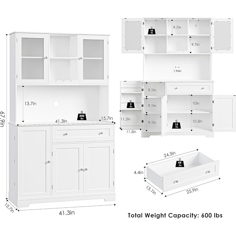 Большой кухонный шкаф для хранения вещей: этот шкаф для хранения вещей имеет размеры 15,7 дюйма в ширину x 41,3 дюйма в глубину x 67,9 дюйма в высоту, с множеством открытых и скрытых зон, спроектирован с большой вместимостью для хранения, что может идеально решить проблему беспорядка на кухне.
