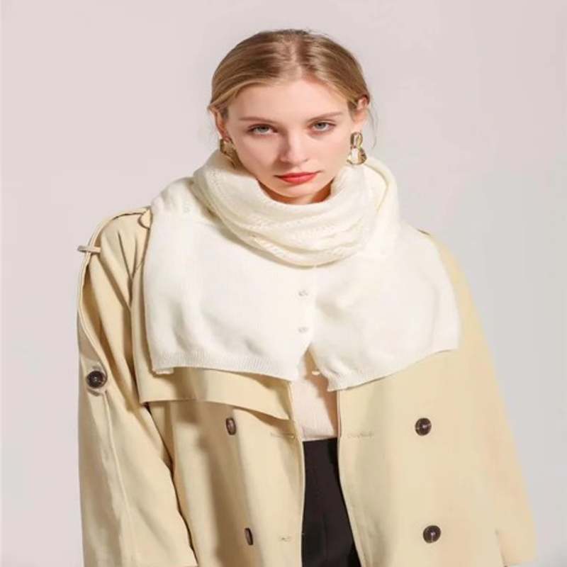 Осенью и зимой шарфы, несомненно, являются незаменимым предметом моды. Благодаря простому кольцу он может эффективно противостоять проникновению холодного ветра, а также разнообразить зимнюю одежду различными цветами, делая вашу фигуру в целом более привлекательной. Этот шарф отличается простотой дизайна, не теряя при этом модности, а общий стиль основан на основной концепции “изысканно и красиво”. В его основе лежит большая площадь однотонного шарфа, и всего несколько пуговиц искусно интегрированы в дизайн нашивки, благодаря чему весь шарф демонстрирует шикарную и высококлассную простоту, которая поражает воображение.