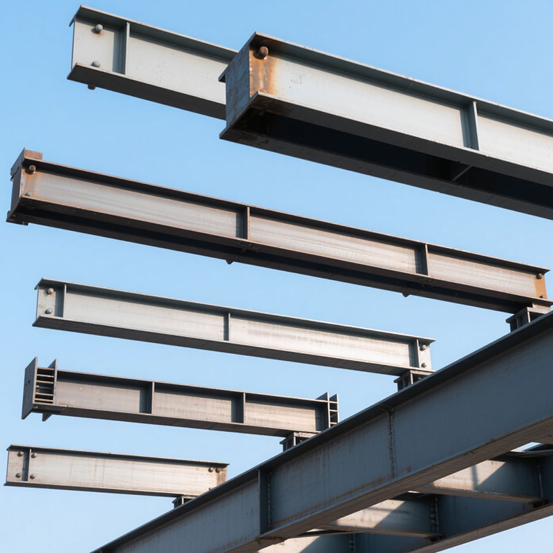 Стальные балки можно разделить на просто опертые балки, непрерывные балки, консольные балки и т. д. в зависимости от условий силы. В зависимости от различных факторов, таких как методы производства, внешний вид, форма поперечного сечения, свойства материала и т. д., стальные балки также можно разделить на горячекатаные, холодногнутые, сварные и другие типы. Кроме того, формы поперечного сечения стальных балок разнообразны, распространенными являются двутавровые (I-образные) и Н-образные, а другие формы включают треугольные и коробчатые формы.
