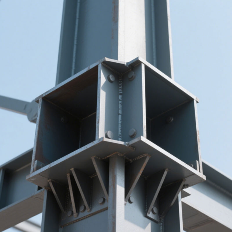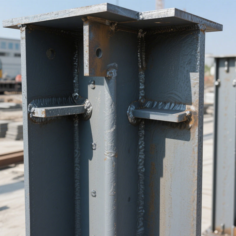 2.Колонна коробчатого сечения: Колонна коробчатого сечения сварена четырьмя стальными пластинами в замкнутое прямоугольное поперечное сечение. Она имеет хорошую ветро- и сейсмостойкость и высокую жесткость на кручение. Она подходит для выдерживания двунаправленных изгибающих моментов и часто используется в высотных зданиях и на крупных заводах.
