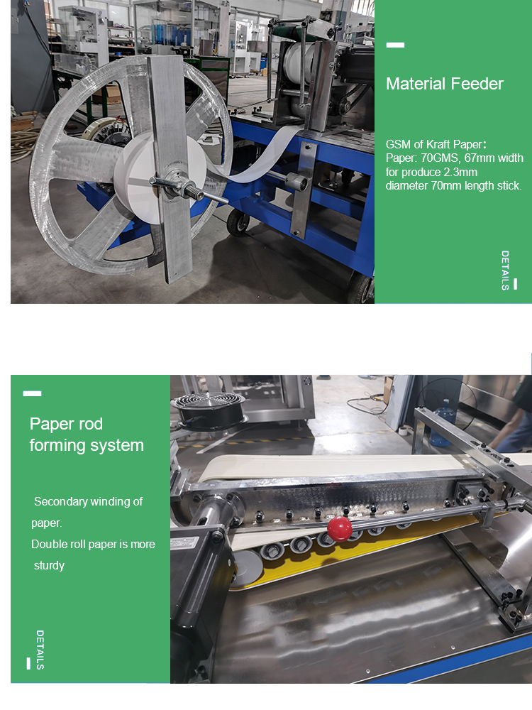 Станок для формирования бумажных палочек с косым прокатом состоит из механизма подачи бумаги, механизма намотки и скручивания, клеевого узла, формующего механизма и механизма подачи с конвейерной лентой.