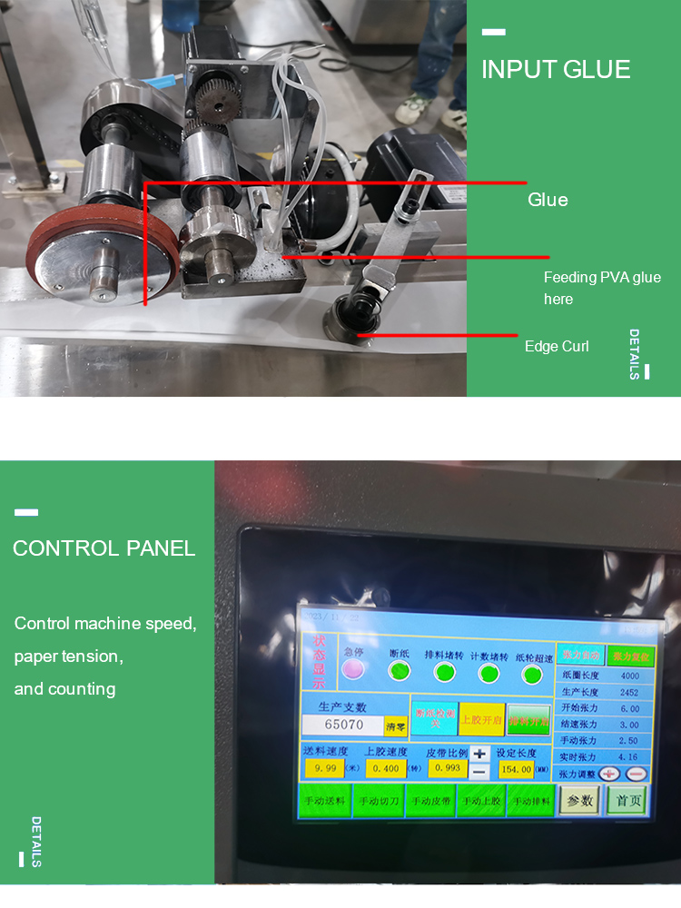 Клеенаносящий ролик используется для равномерного нанесения клея, а количество подаваемого клея регулируется клеевым мотором.