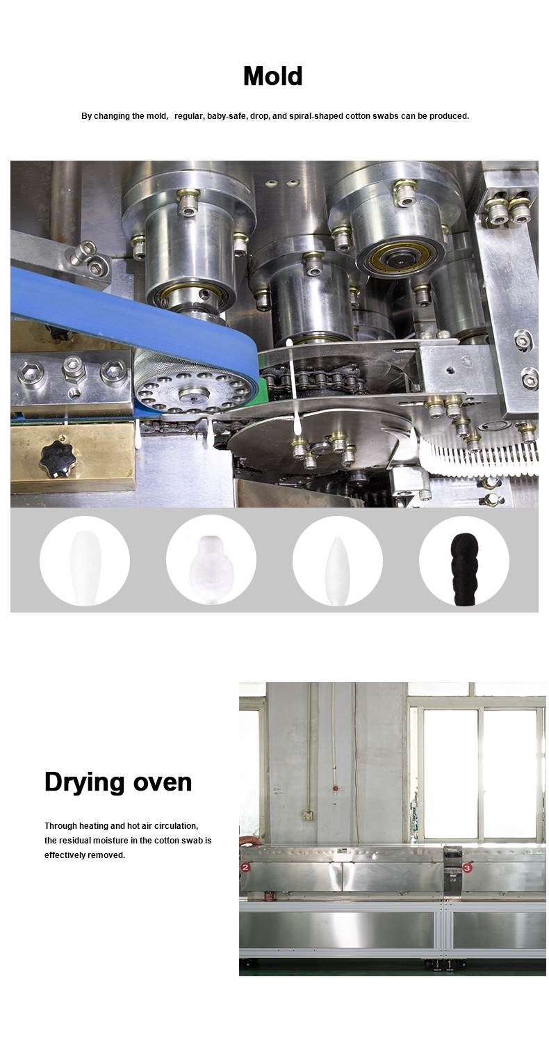 Этот автоматический станок для производства йодоформных ватных палочек представляет собой полностью автоматизированную установку, включающую узел формирования ватных палочек, сушильную печь и полностью автоматический упаковочный модуль. Для его обслуживания требуется всего один оператор, который подаёт исходные материалы, а готовая продукция выходит полностью с этого единого станка.