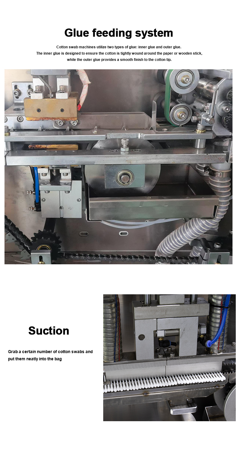 Она включает автоматическую подачу и раскрытие картонных заготовок, автоматическую укладку ватных палочек/ватных тампонов в коробки и автоматическую запайку коробок. Использование этой машины позволяет сократить потребность в двух рабочих.