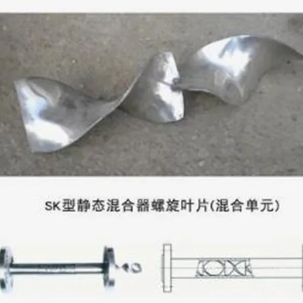 Тип SK, классический смеситель типа Kenics, состоит из ряда левых и правых спиральных пластин, приваренных под углом 90 градусов в чередующемся порядке. Каждый спиральный элемент разделяет поток жидкости на две части, закручивает их и в итоге обеспечивает геометрическое разделение и радиальное смешение. Он эффективен в широком диапазоне чисел Рейнольдса, особенно хорошо справляется со смешением и теплообменом сред с высокой и средней вязкостью, эффективно подавляет радиальные градиенты температуры и концентрации в ламинарном режиме и обладает хорошей способностью к самоочищению.