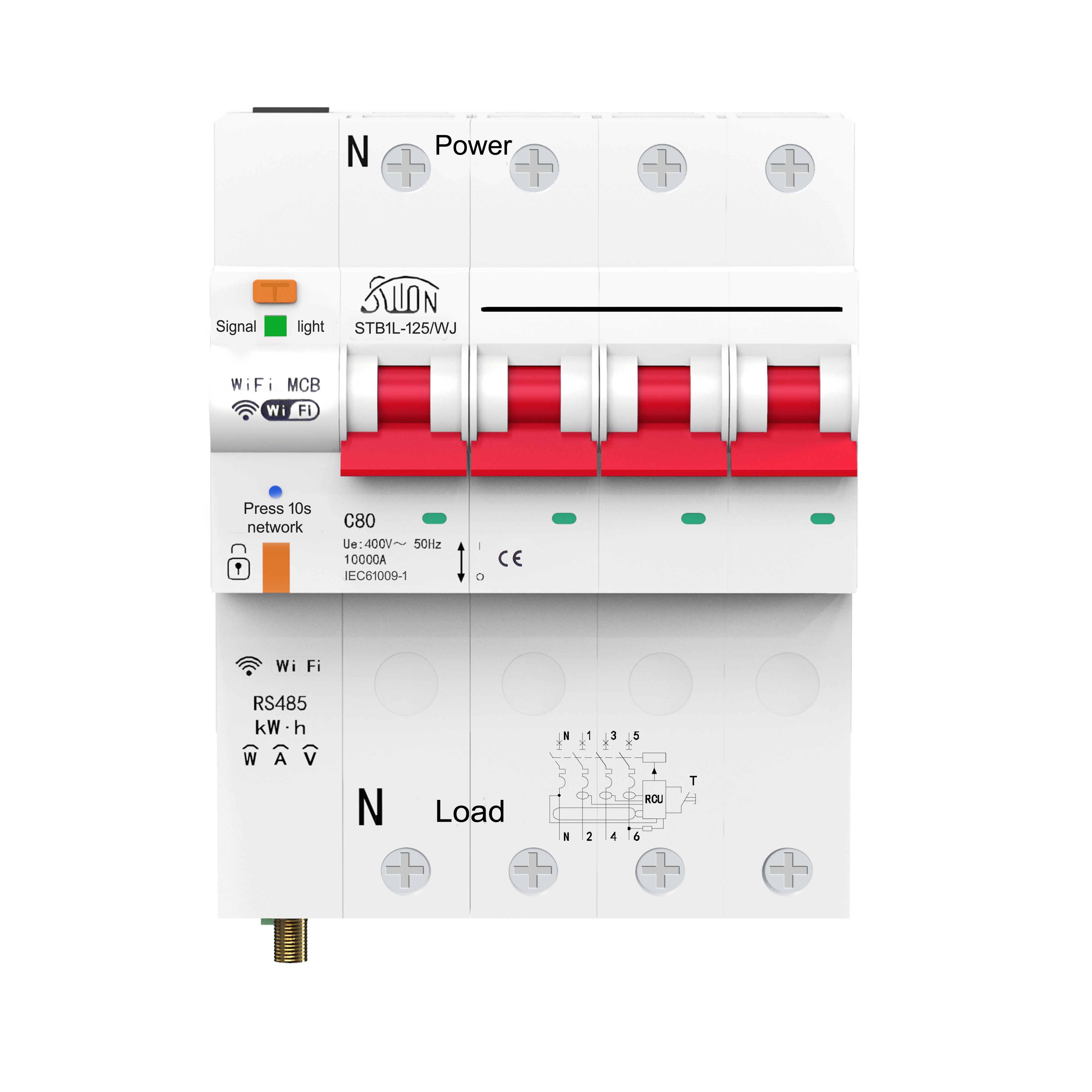 STB1L-125/WJ系列RS485断路器适用于交流50/60Hz,额定工作电压230/400V,额定工作电流80A及以下的用户或负载中,当线路中出现过欠压(设定过欠压)时对用电设 备进行保护;同时具有过载及短路保护功能,外形美观、 性能优良可靠,分断能力较高,脱扣迅速,可实现远程控 制,产品模数化导轨式安装。