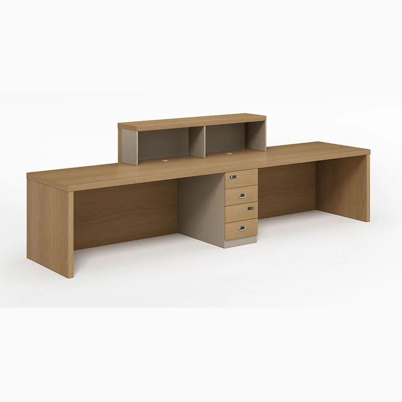 Доступно три стандартных размера: 1,8 м × 0,6 м (для небольшой офисной зоны), 2,4 м × 0,7 м (для средней приемной) и 3,0 м × 0,8 м (для большой приемной). Доступны различные формы, например, изогнутые и Г-образные, для различных офисных помещений. Экологическая сертификация: благодаря использованию экологически чистых панелей класса E0 с выбросами формальдегида ≤ 0,05 мг/м³, это пространство соответствует национальным стандартам испытаний качества мебели и сертификации CE ЕС, что соответствует требованиям к охране здоровья и окружающей среды в офисе и обеспечивает безопасность здоровья сотрудников.