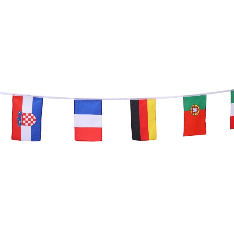 Строковые флаги называют любые праздничные украшения из ткани, пластика, бумаги или картона, имеющие форму ткани. Гирлянды из разноцветных треугольных флажков и отрезы ткани, собранные и сложенные в гирлянды или веерные складки, — типичные виды гирлянд.