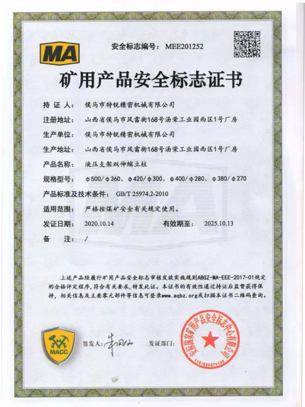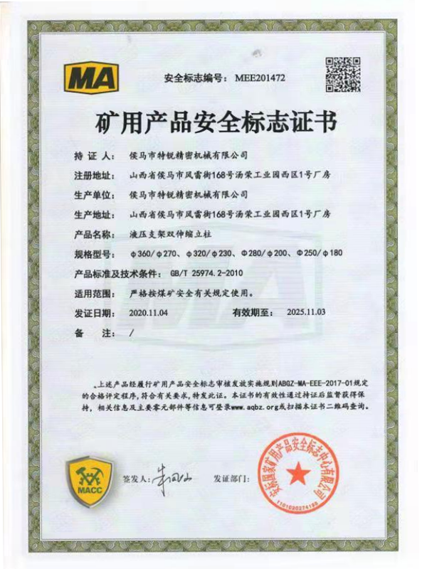 - Обеспечение постоянного рабочего сопротивления (обычно 500~4000 кН) для балансировки давления кровли и предотвращения обрушений.