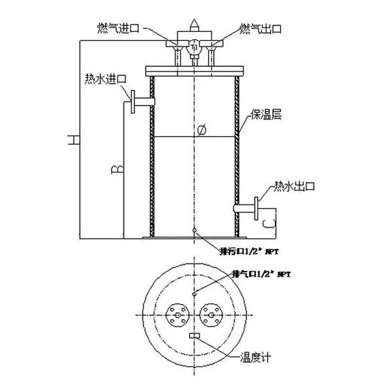 Рабочая среда: сторона кожуха — вода, сторона труб — природный газ.