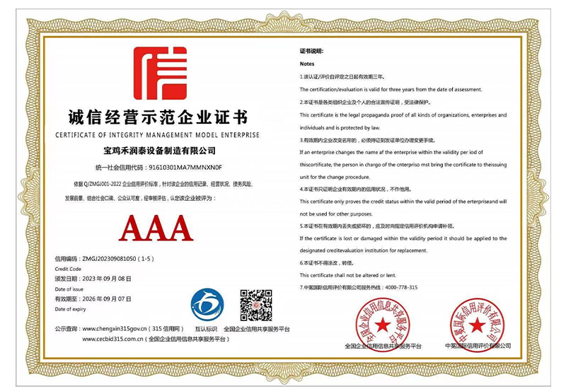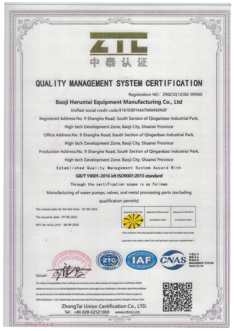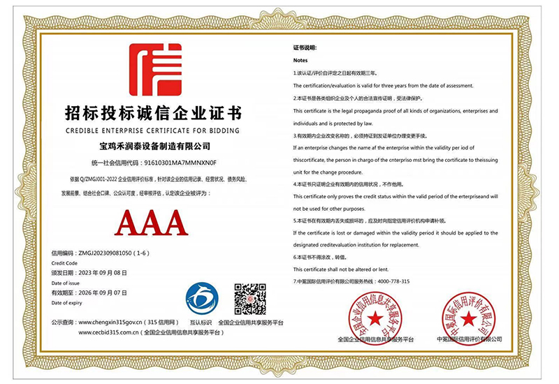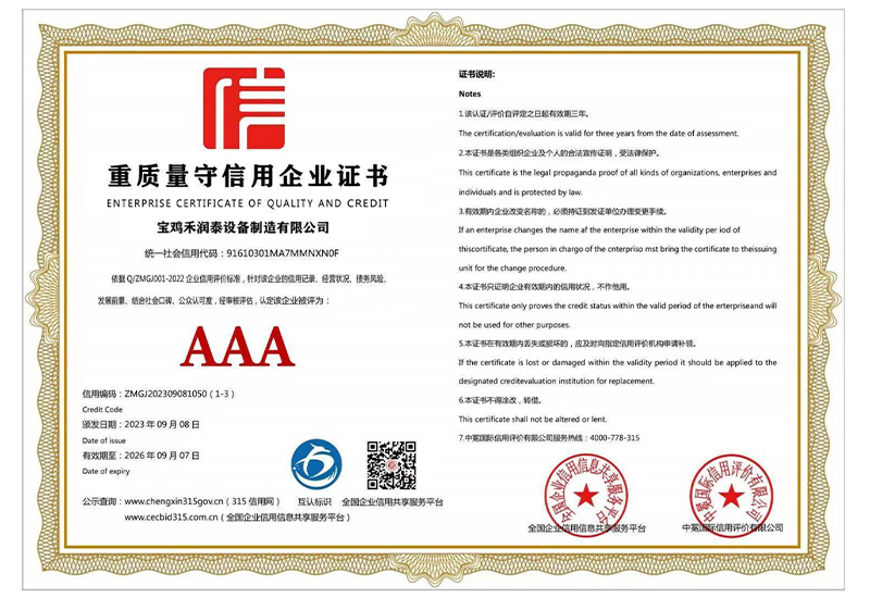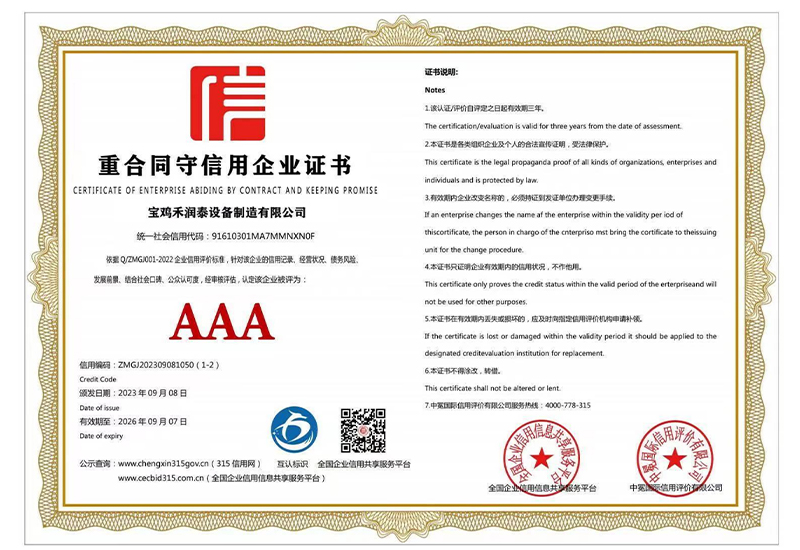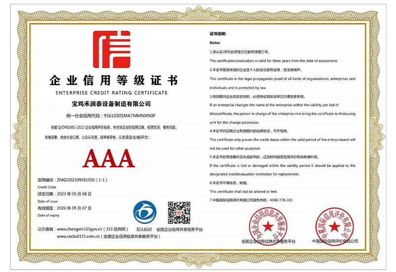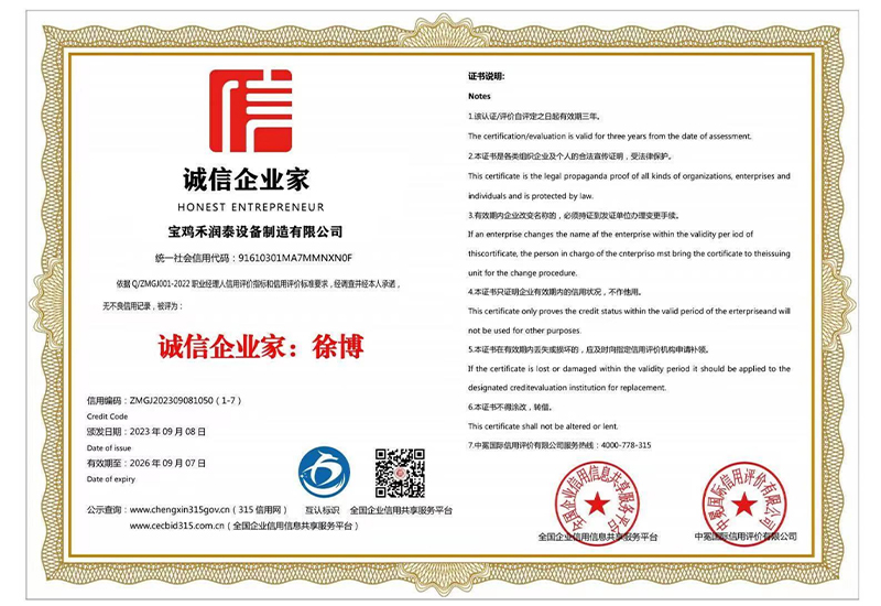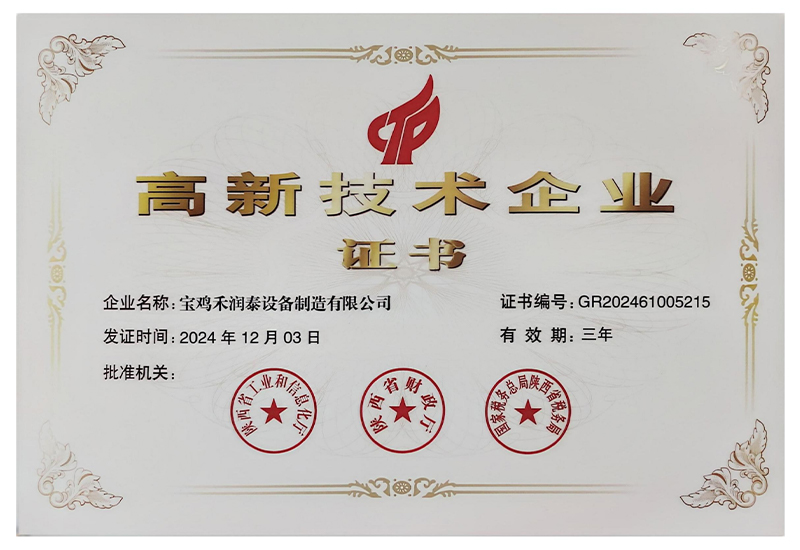 ООО Баоцзи Хэжуньтай Производство Оборудования расположено в городе Баоцзи, известном как “титановая столица”, и является высокотехнологичным предприятием, специализирующимся на разработке и производстве оборудования из титана, никеля, циркония, молибдена, тантала и их композитных материалов. Опираясь на преимущества продукции и технологий, компания сформировала полный производственный цикл обработки титановых и никелевых материалов, а также изготовления оборудования из титана и титановых сплавов.