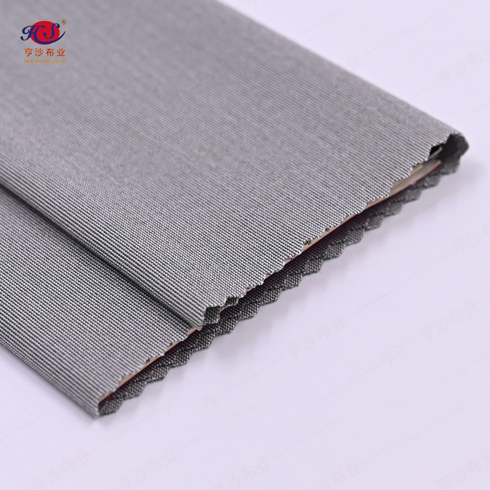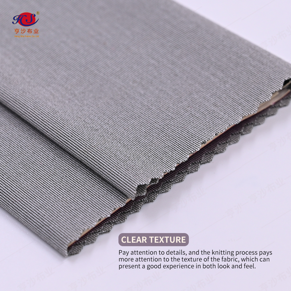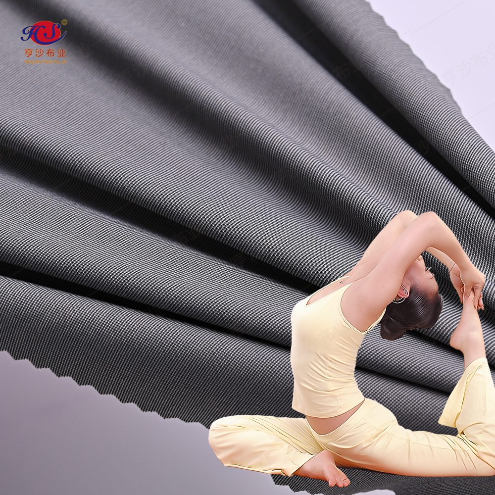 61165# T бамбуковое угольное волокно смешано с 84% нейлона и 16% спандекса. Бамбуковое угольное волокно равномерно распределяется в процессе прядения смеси мастербатча (содержание 5%), что придает ткани уникальную функцию поглощения запаха. Проверено, что уровень адсорбции аммиака составляет 78%, что подходит для потоотделения после тренировки. Вес 160 г/м² достигается с помощью процесса 22 иглы/дюйм утка плоской иглы, а плоскостность поверхности достигает 98%. Черная мастербатч бамбукового угольного волокна придает ткани темно-серую матовую текстуру (глянец 25GU), которая подходит для минималистской спортивной эстетики. Эластичное волокно спандекса обеспечивает поперечное удлинение 170% и продольное удлинение 150%, что соответствует эластичным требованиям повседневной спортивной и повседневной одежды.